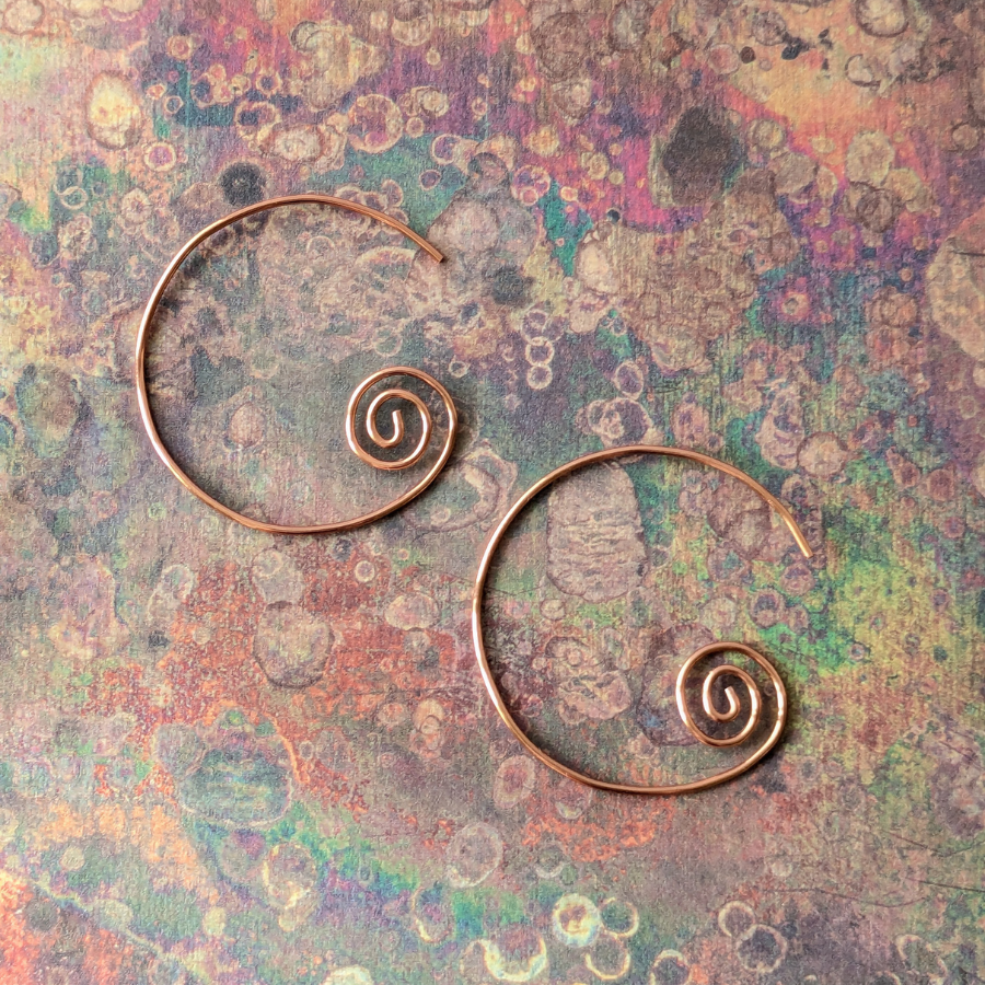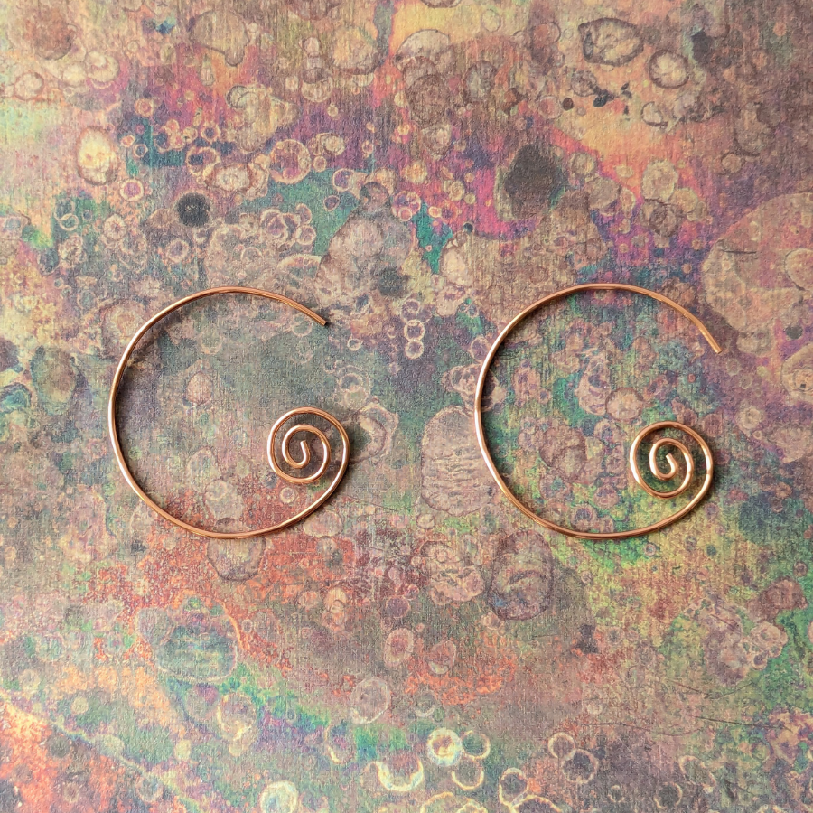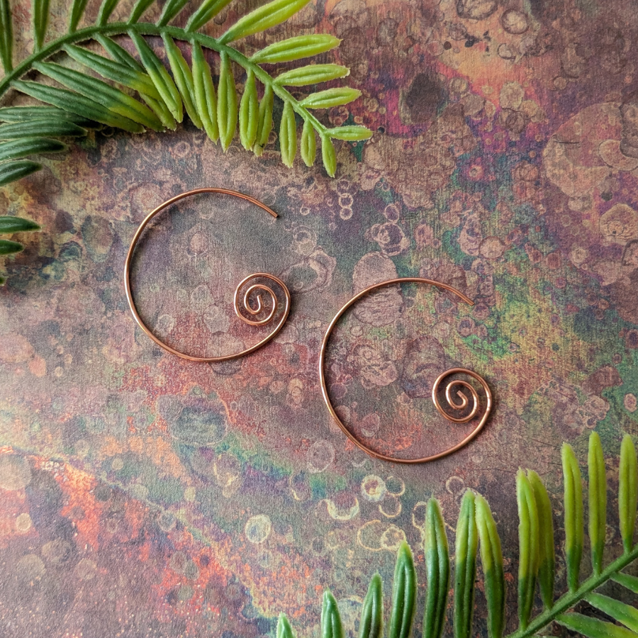 These earrings have been handcrafted from tarnish resistant copper wire. As these are hand shaped, each pair is truly unique.