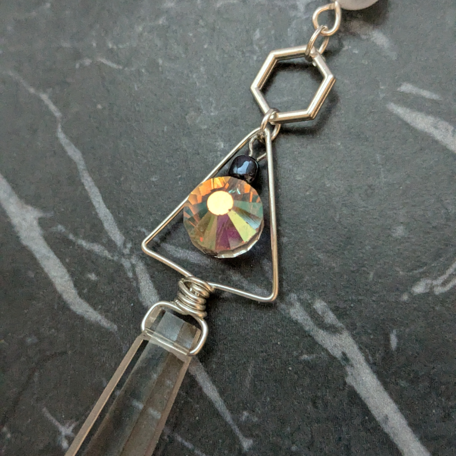 Handmade pendulum, created using a variety of rescued and upcycled elements. This particular pendulum features: