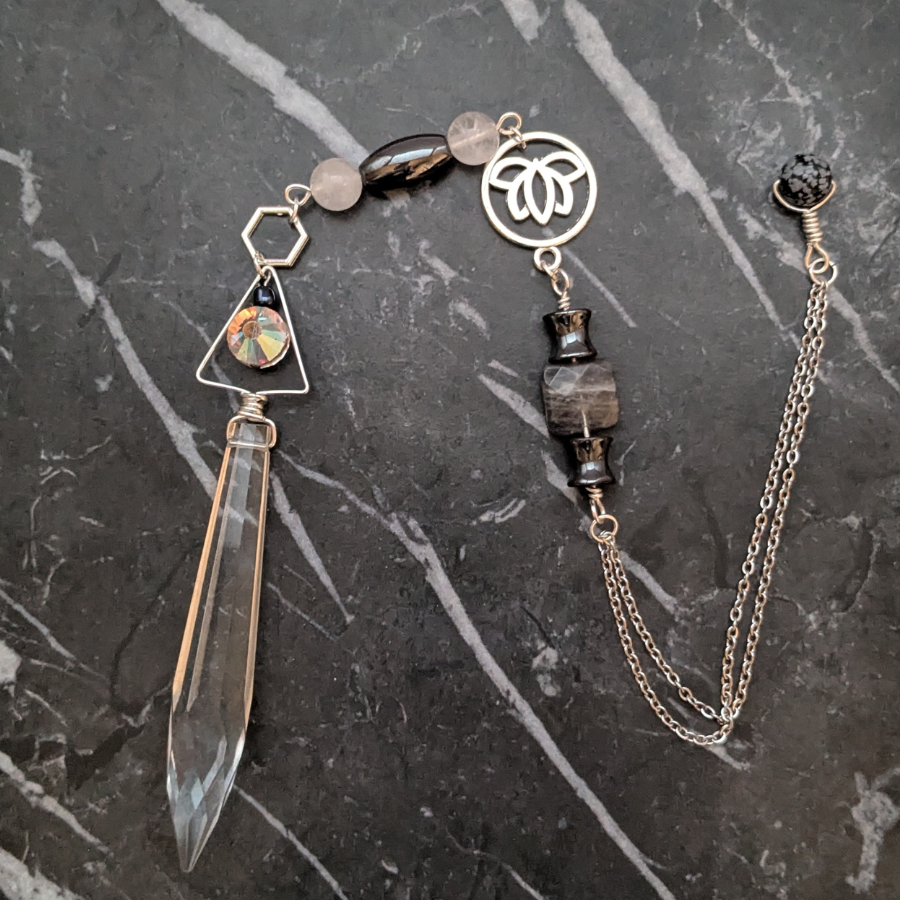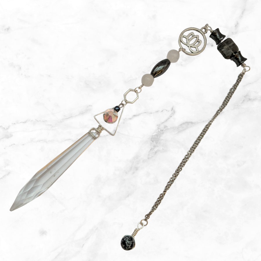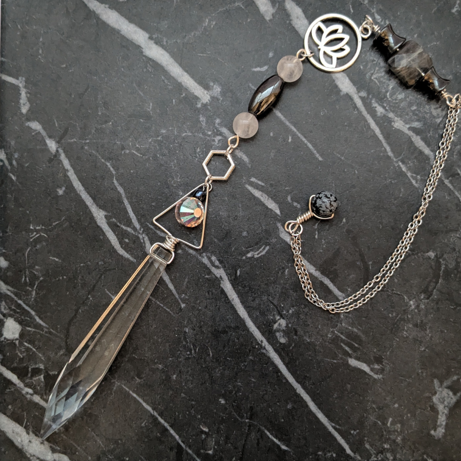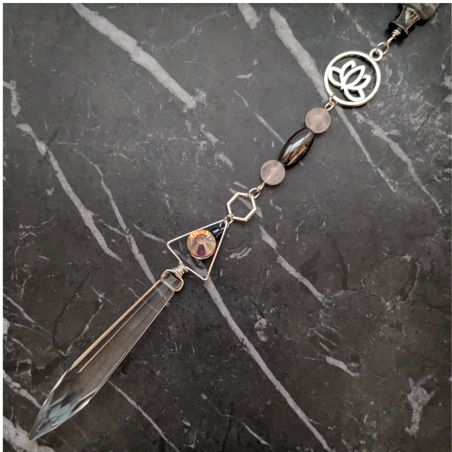 Handmade Pendulum Featuring Quartz and Lotus Flower Charm