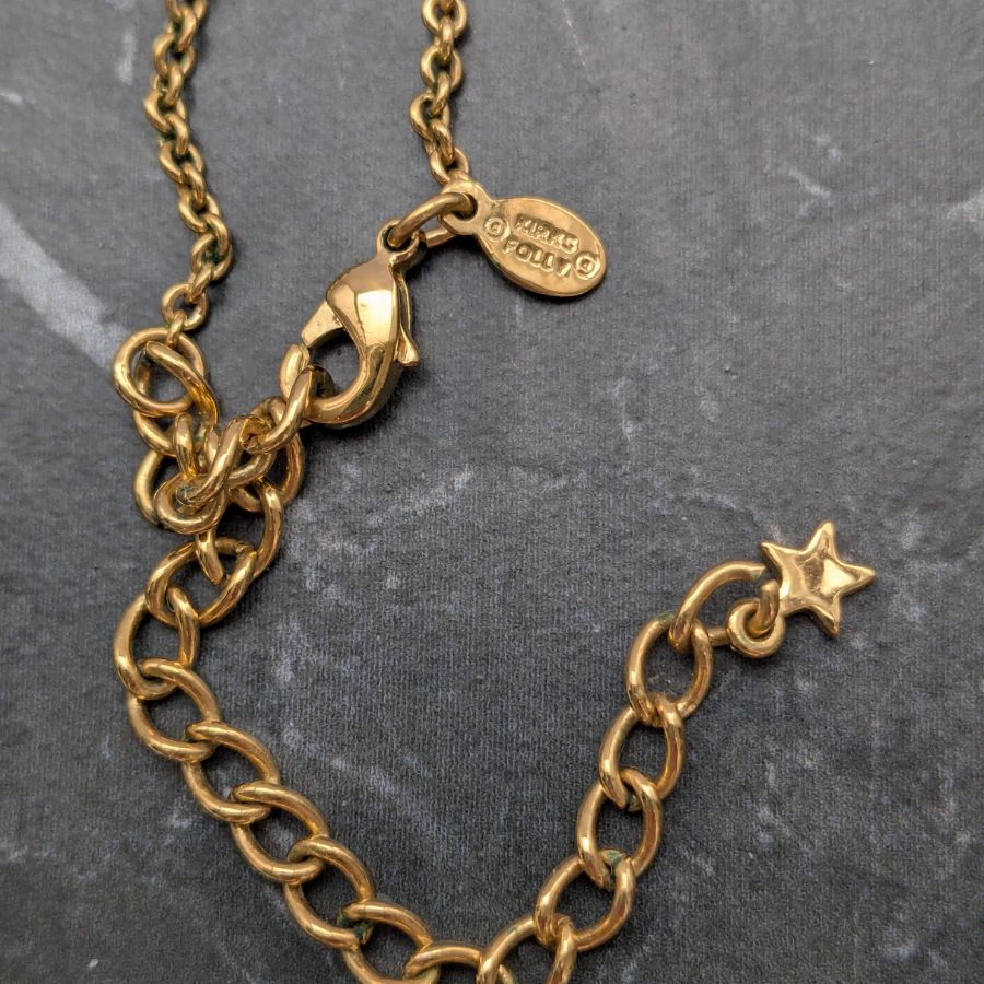 Fastens with a lobster claw clasp.