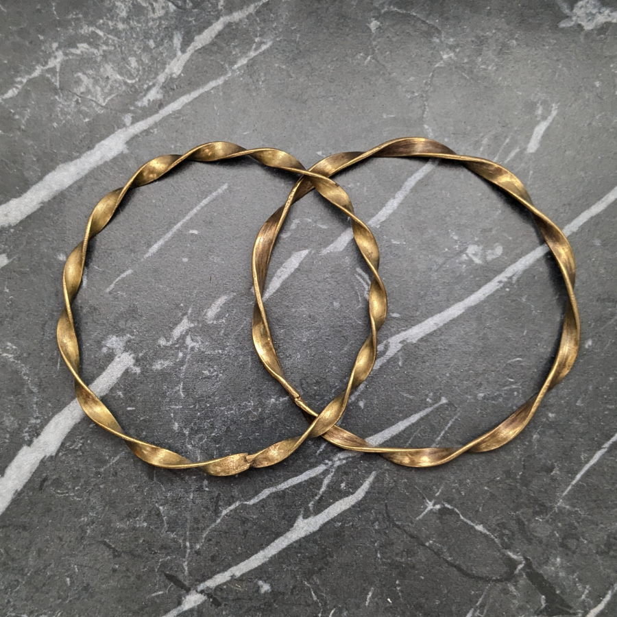 Lovely pair of vintage brass bangles from 1970s. These have a simple twist design and would look great worn together or with other stacking bangles.