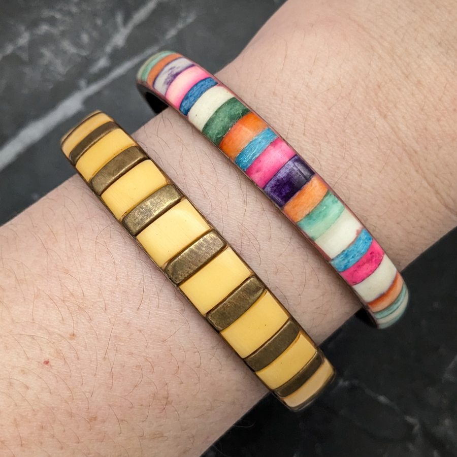Pair of Vintage Colourful Striped Stacking Bangles