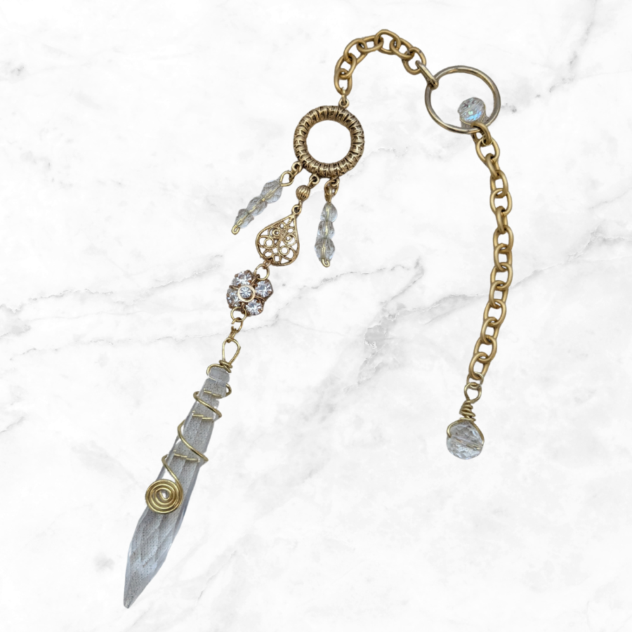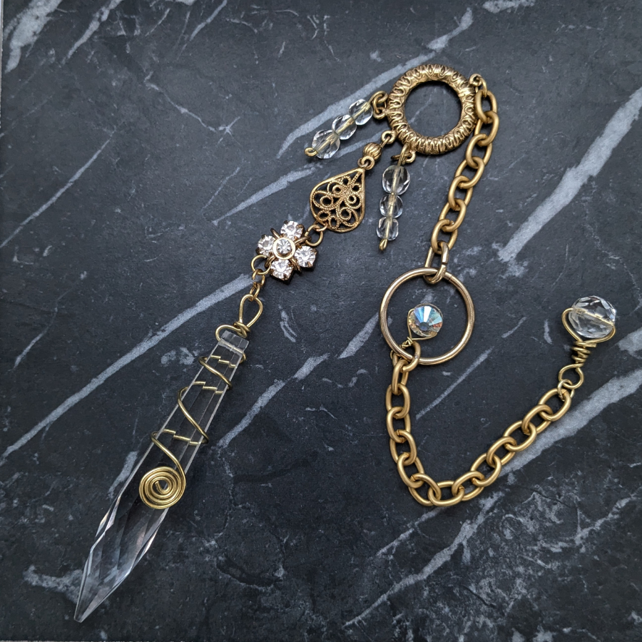 Handmade pendulum, created using a variety of rescued and upcycled elements. This particular pendulum features:
