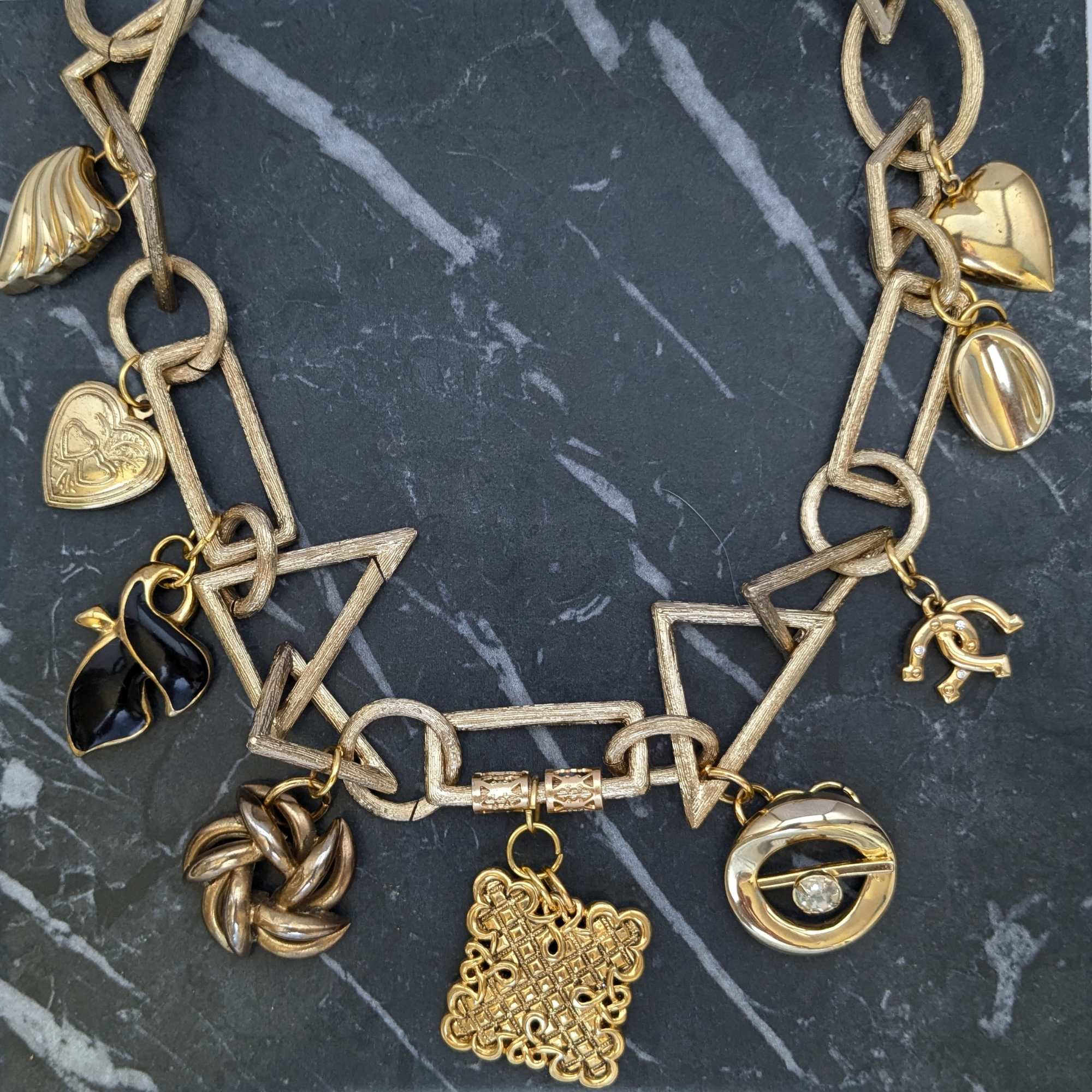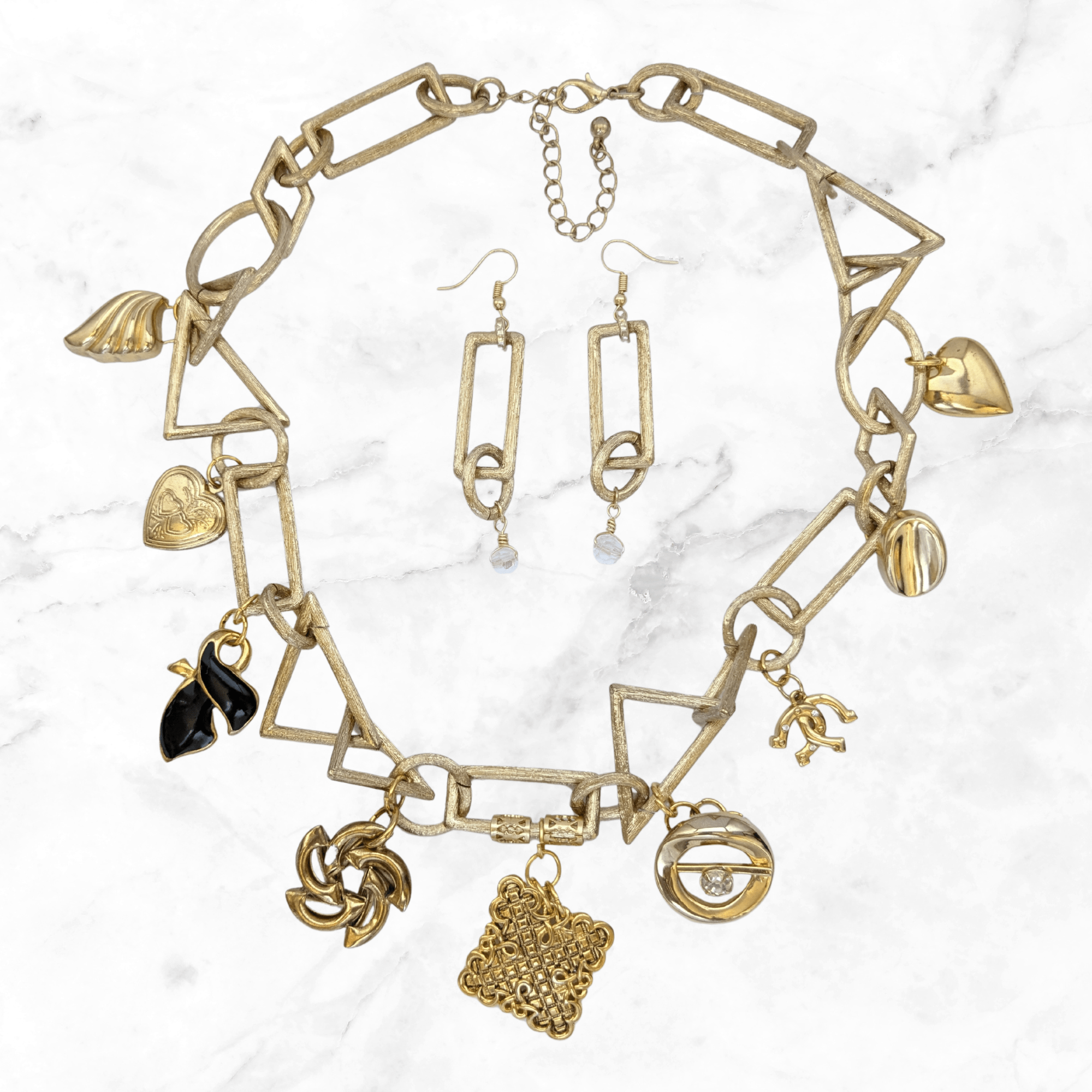 Upcycled Vintage Chunky Charm Necklace and Earrings