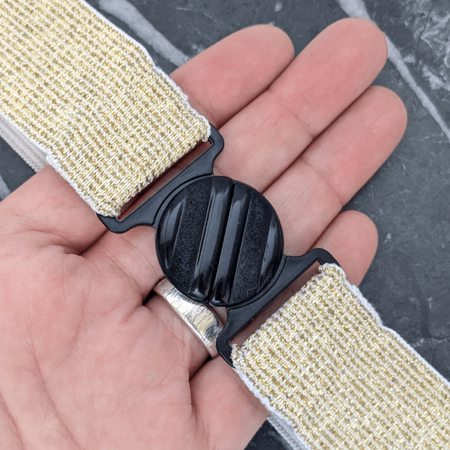 Part of my Unbuckled collection, this choker necklace gives beautiful vintage buckles a new life as the focal point of a bold and distinctive design. Each choker is created using comfortable white/gold elastic, paired with two vintage buckles that link together at the front.