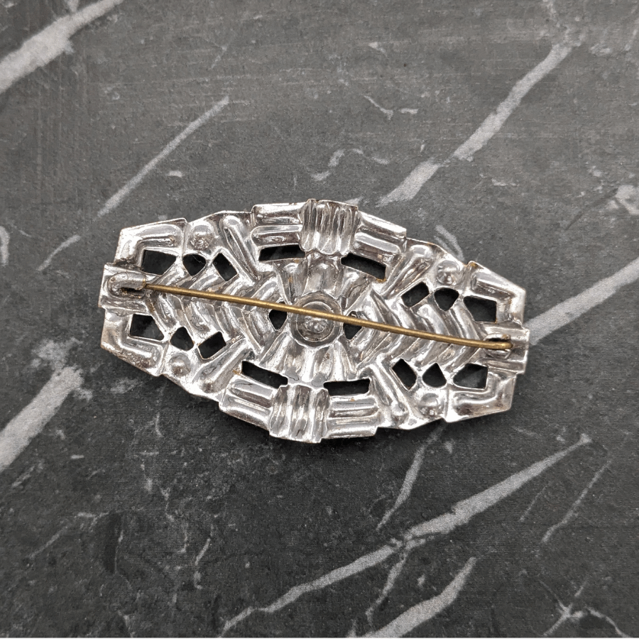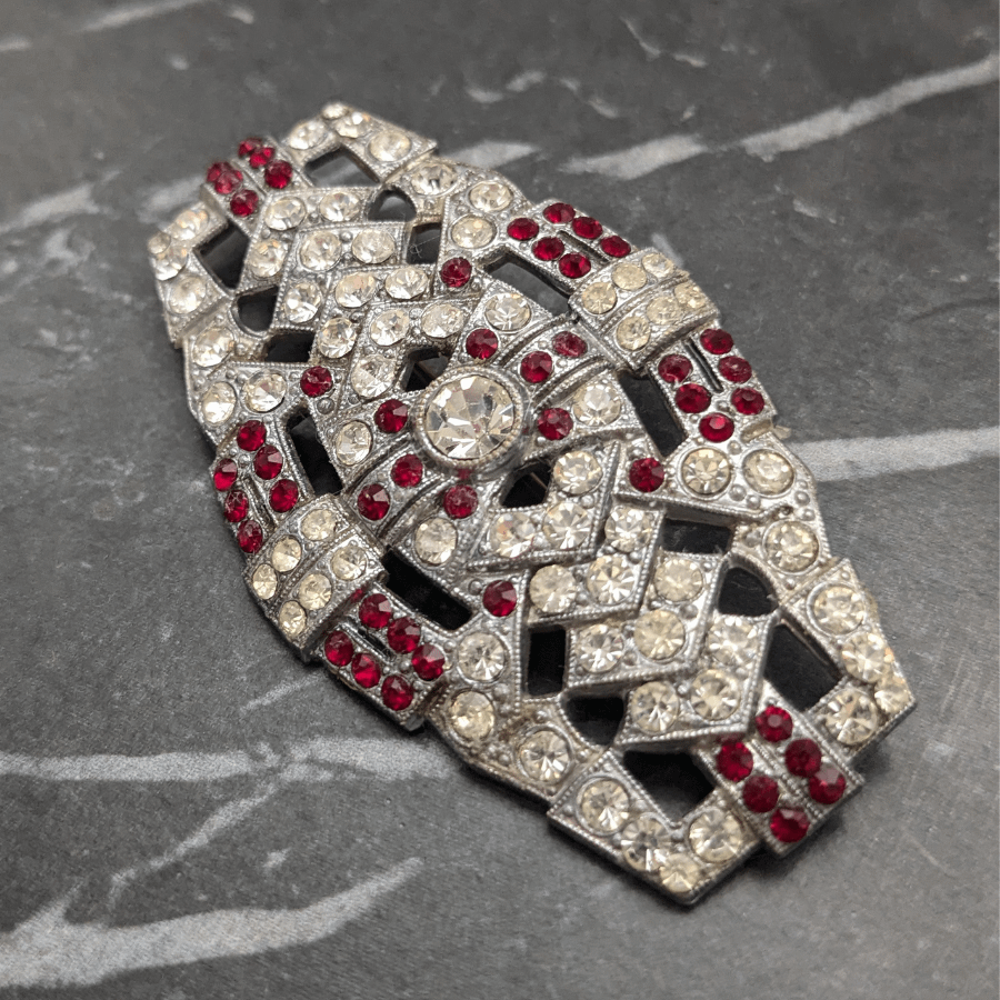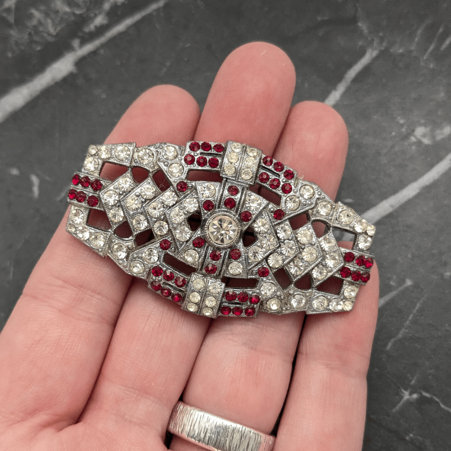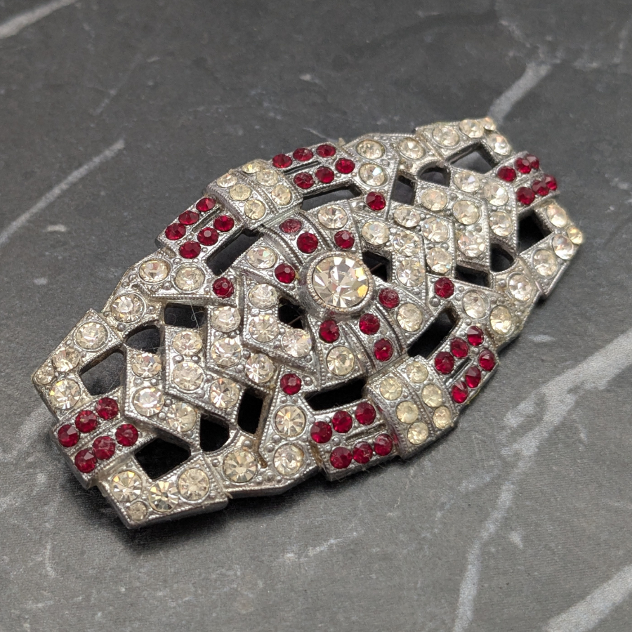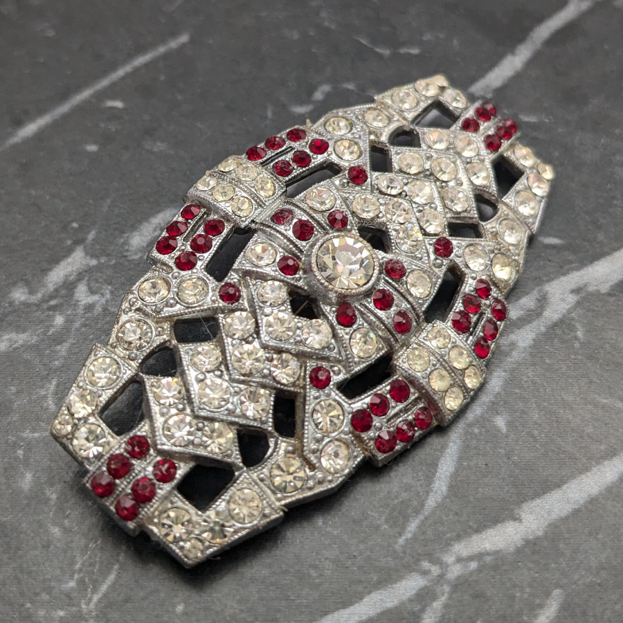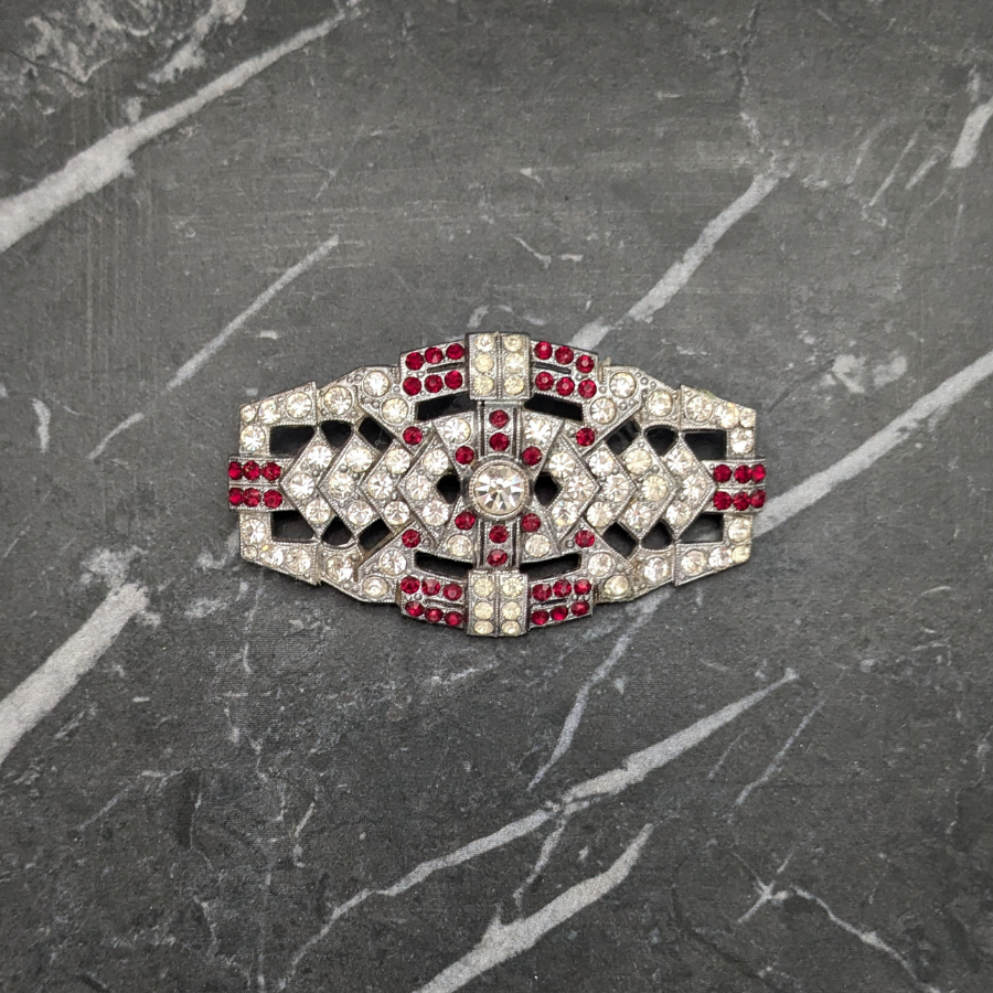 Vintage Art Deco Red and Clear Rhinestone Brooch