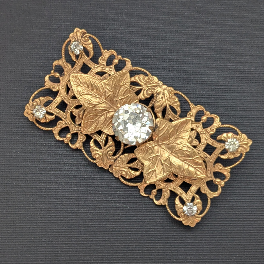 Vintage Art Deco Czech Filigree Brooch With Ivy Leaf Design