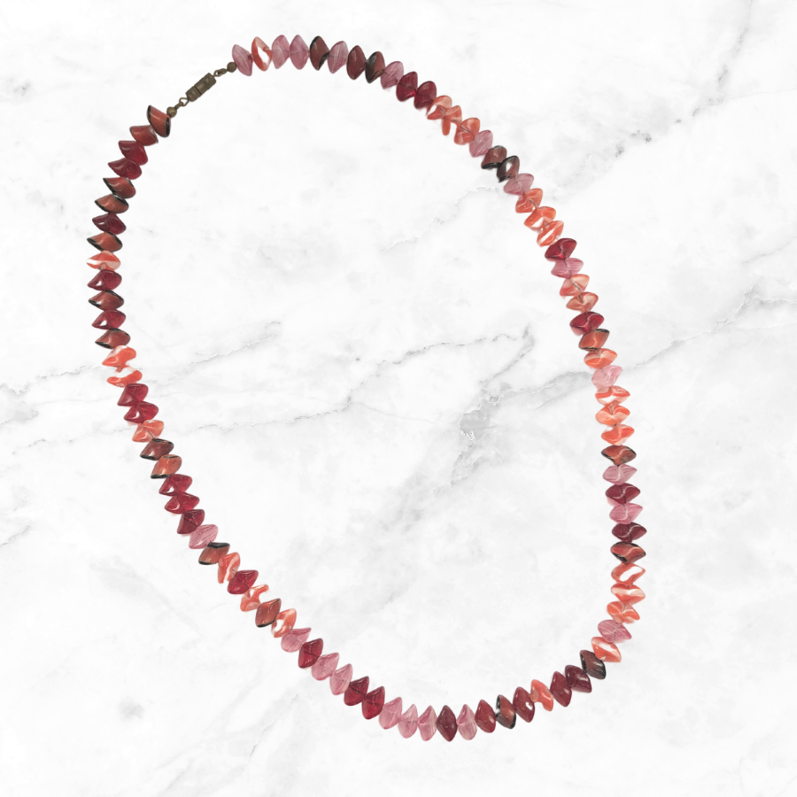 Vintage Art Deco Pink and Red Glass Beaded Necklace