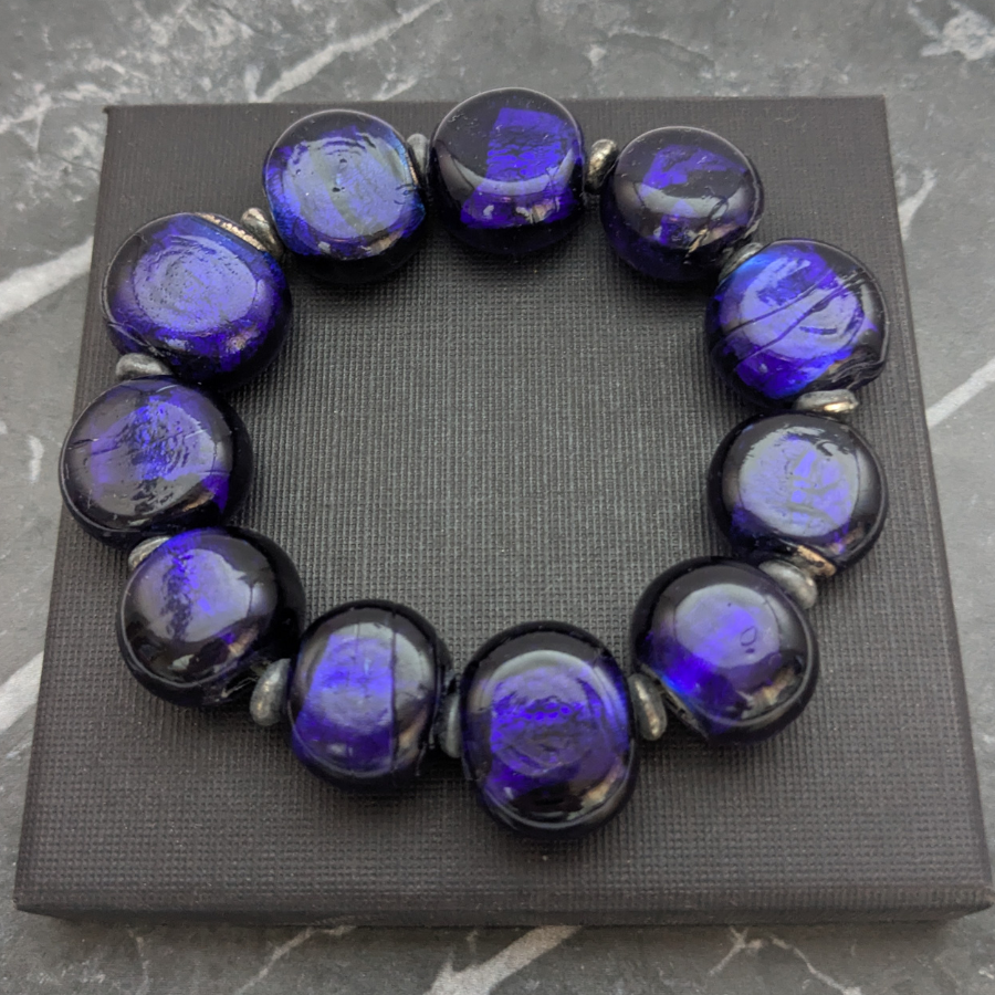 Vintage Cobalt Blue Glass Beaded Bracelet. This is a stetch bracelet on clear elastic cord. The beads are made from glass and are a stunning deep cobalt blue colour.