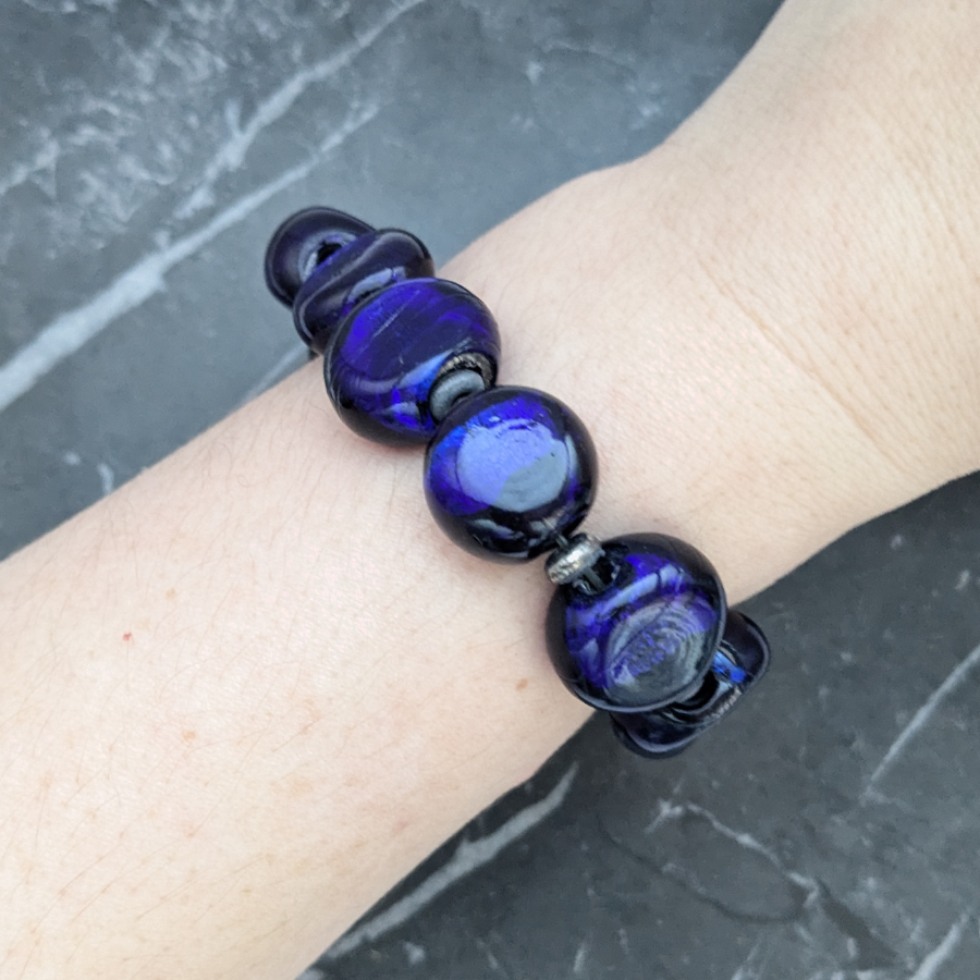 Vintage Cobalt Blue Glass Beaded Bracelet