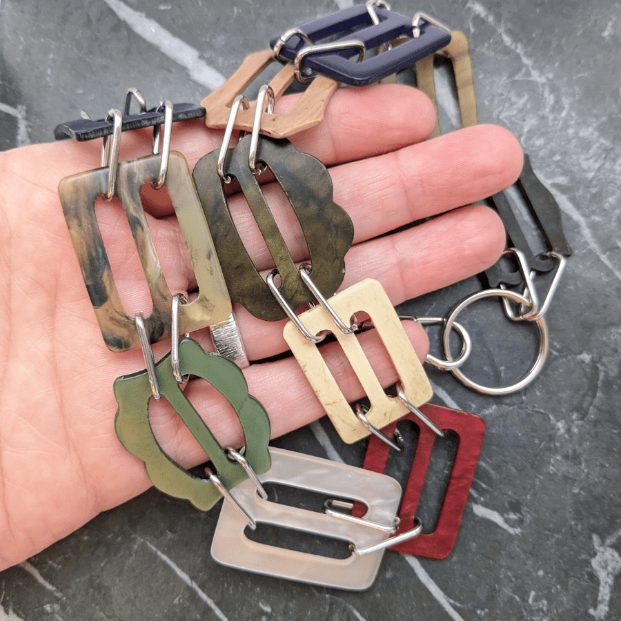 • Buckles in a variety of colours, shapes, and materials