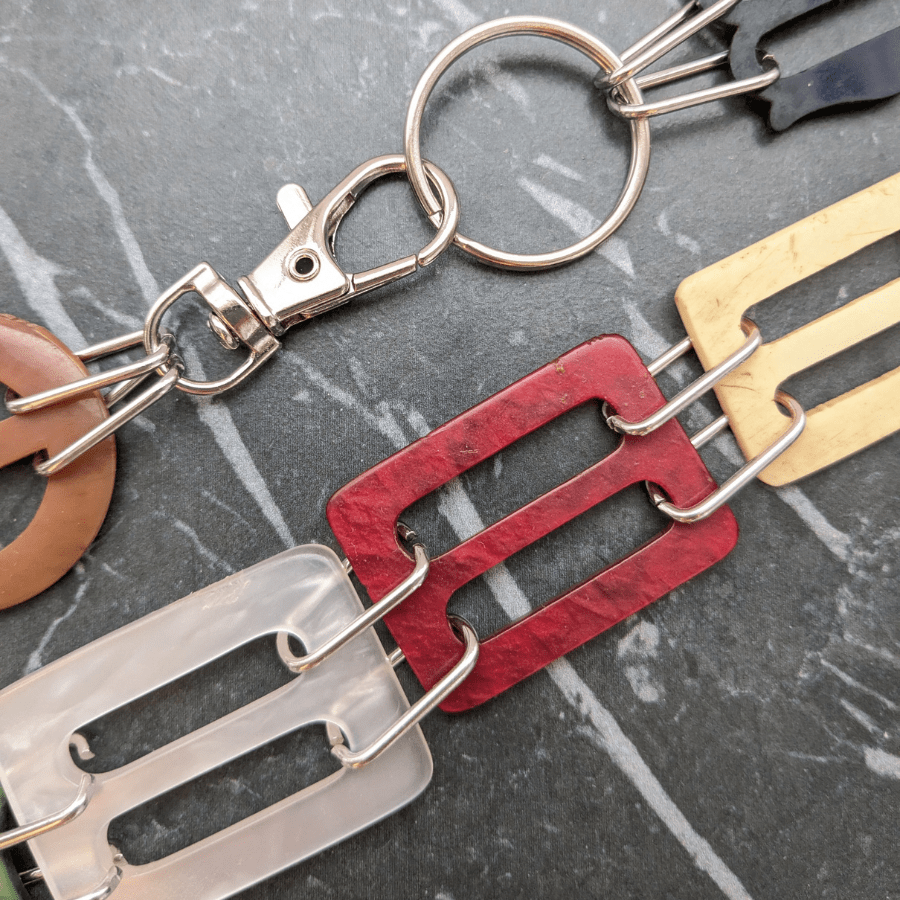 Part of my Unbuckled collection, this necklace transforms vintage belt buckles into a bold and distinctive piece of jewellery. Each necklace is created by carefully selecting buckles of different colours, shapes, and materials, then joining them together to form a striking chain of vintage design.
