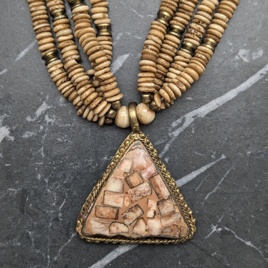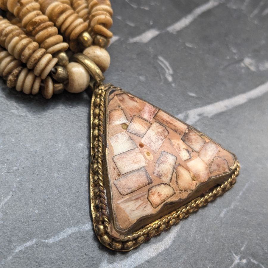 Vintage multi strand, tribal beaded necklace with triangular pendant