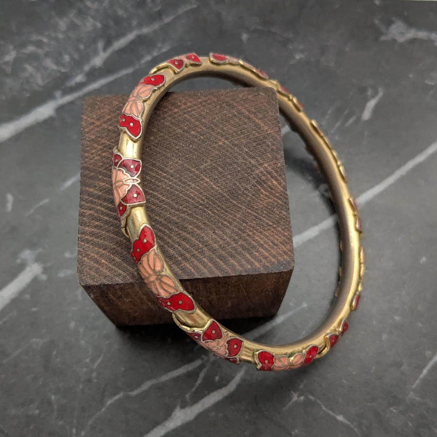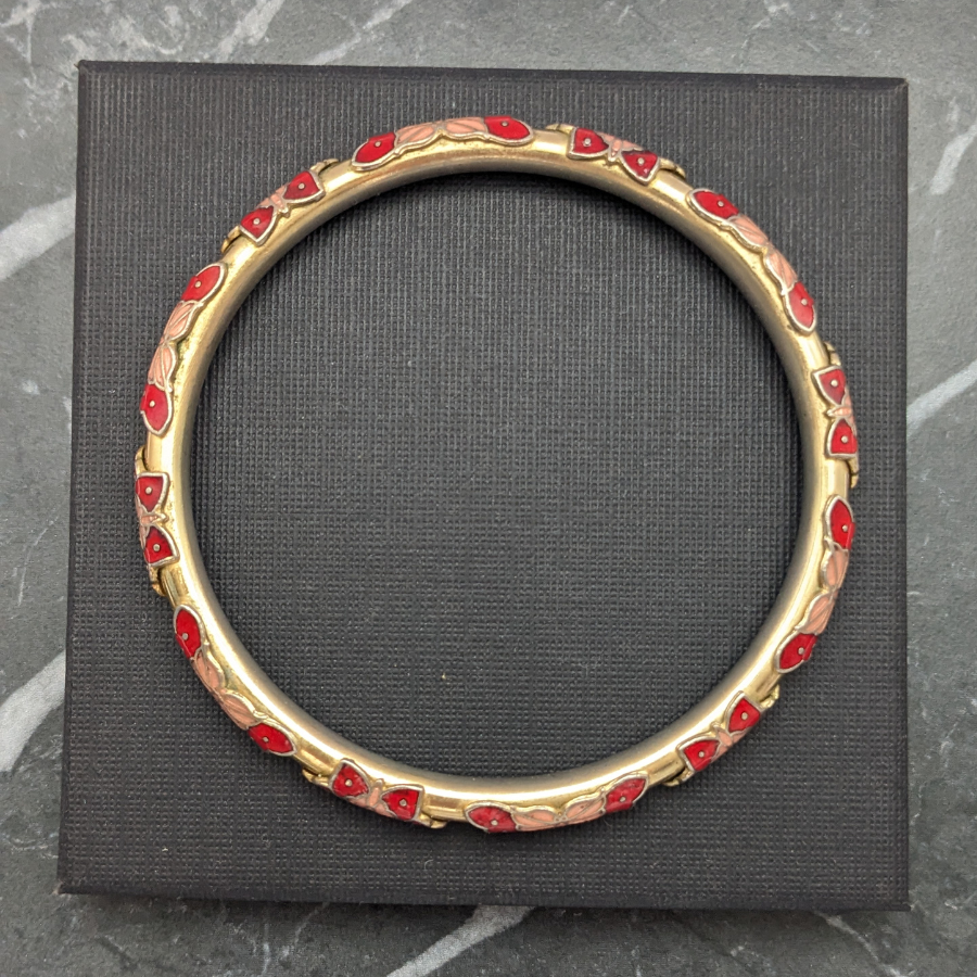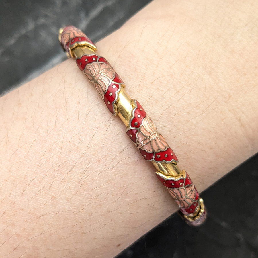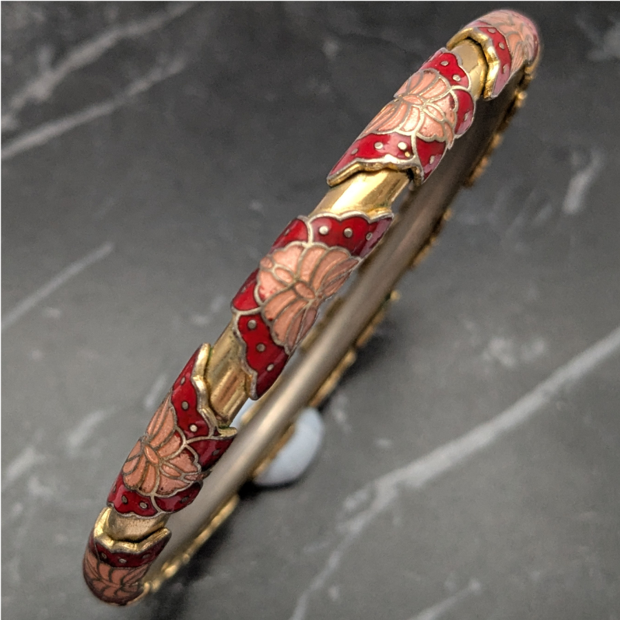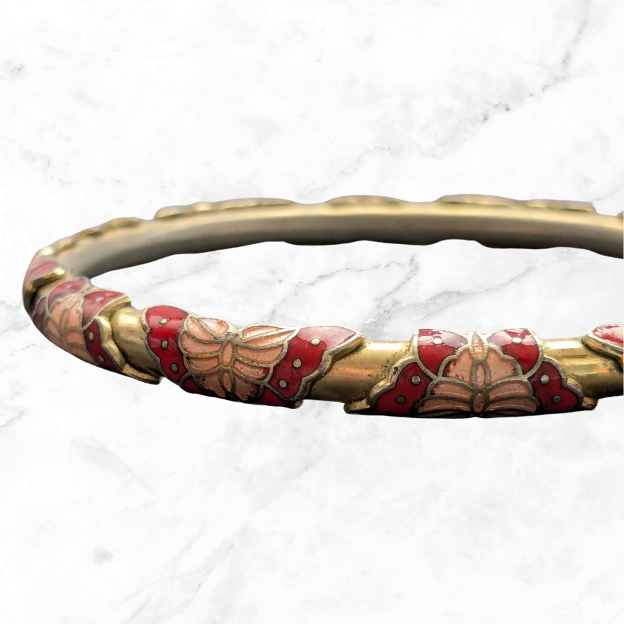 Stunning vintage cloisonne bangle featuring red enamel butterflies.