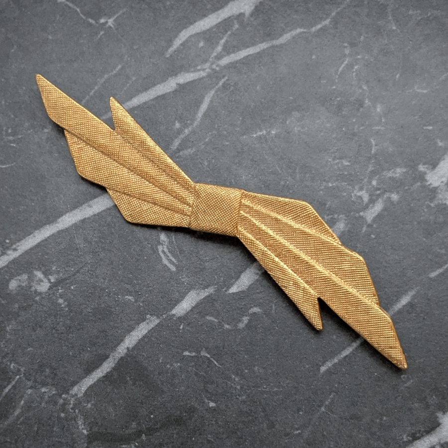 Stunning brooch by Monet – The bow has been made in an Art Deco style and is gold in colour. The surface has a textured finish and the Monet signature can be found on the back, just behind the pin.