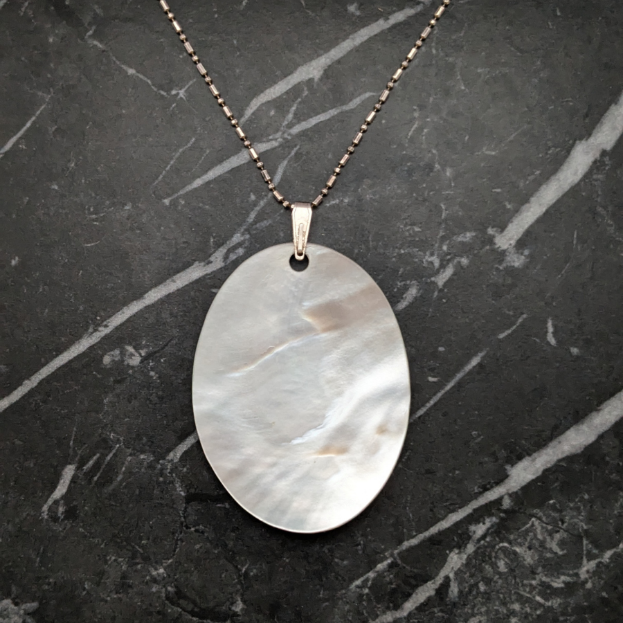 Vintage Sterling Silver Chain With Large Mother of Pearl Pendant