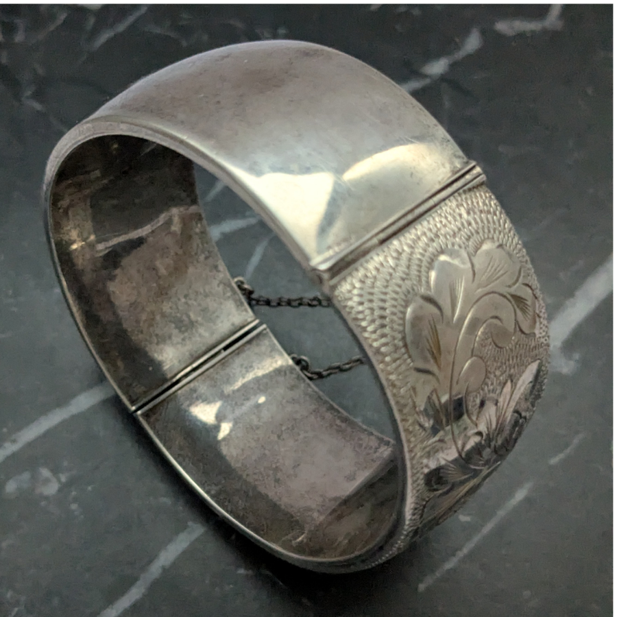 Vintage Sterling Silver Engraved Bangle