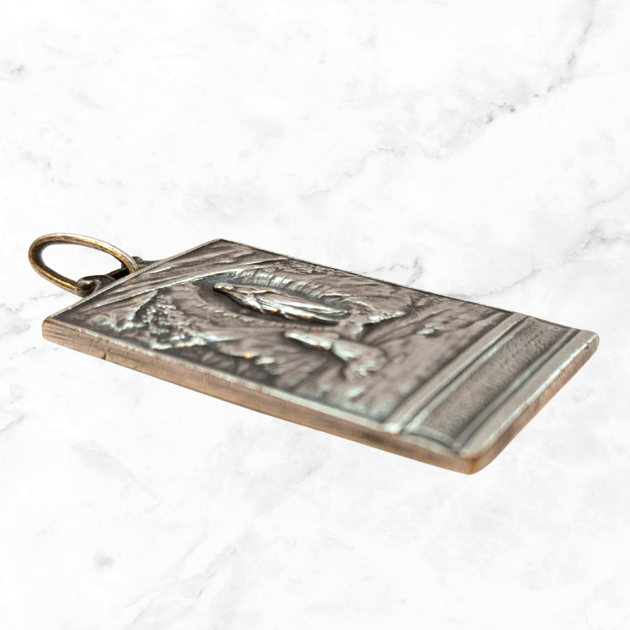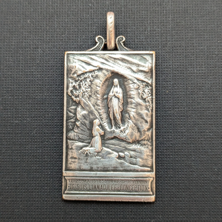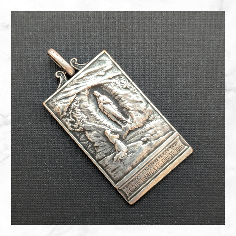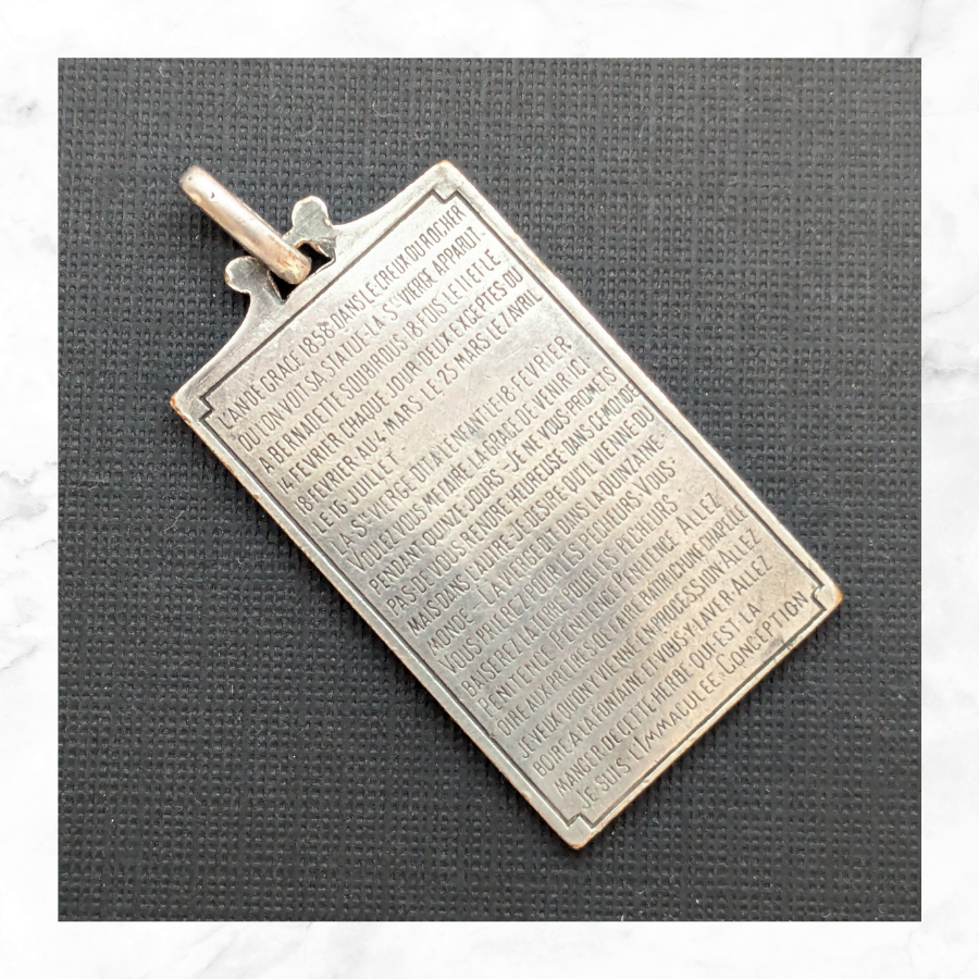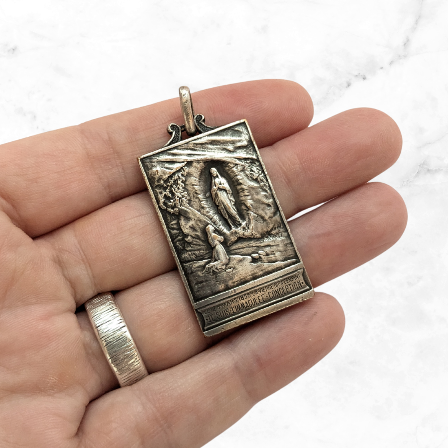 This is a solid sterling silver medal featuring our lady of Lourdes – Jesus Immaculee Conception’