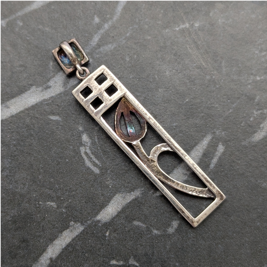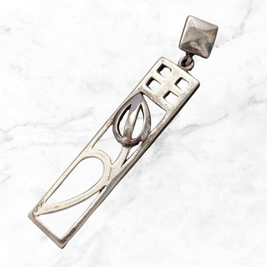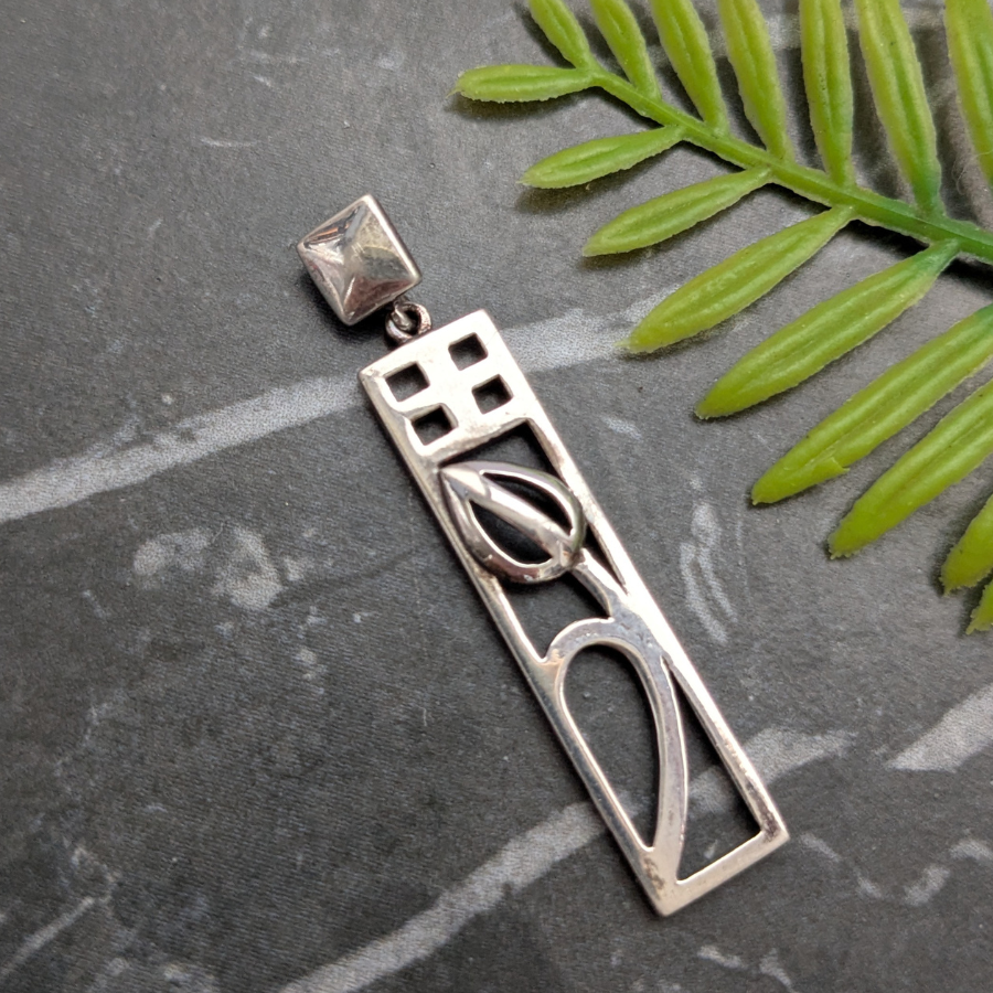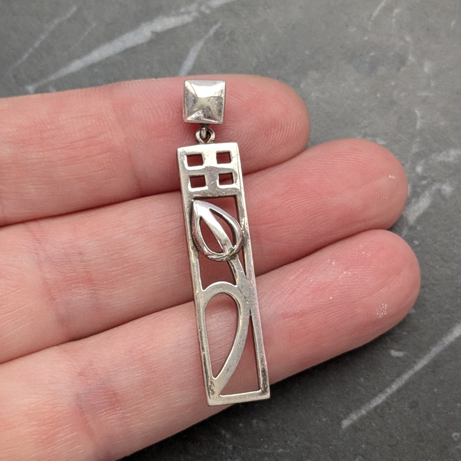 Vintage Sterling Silver Rectangular Pendant Rennie Mackintosh Style