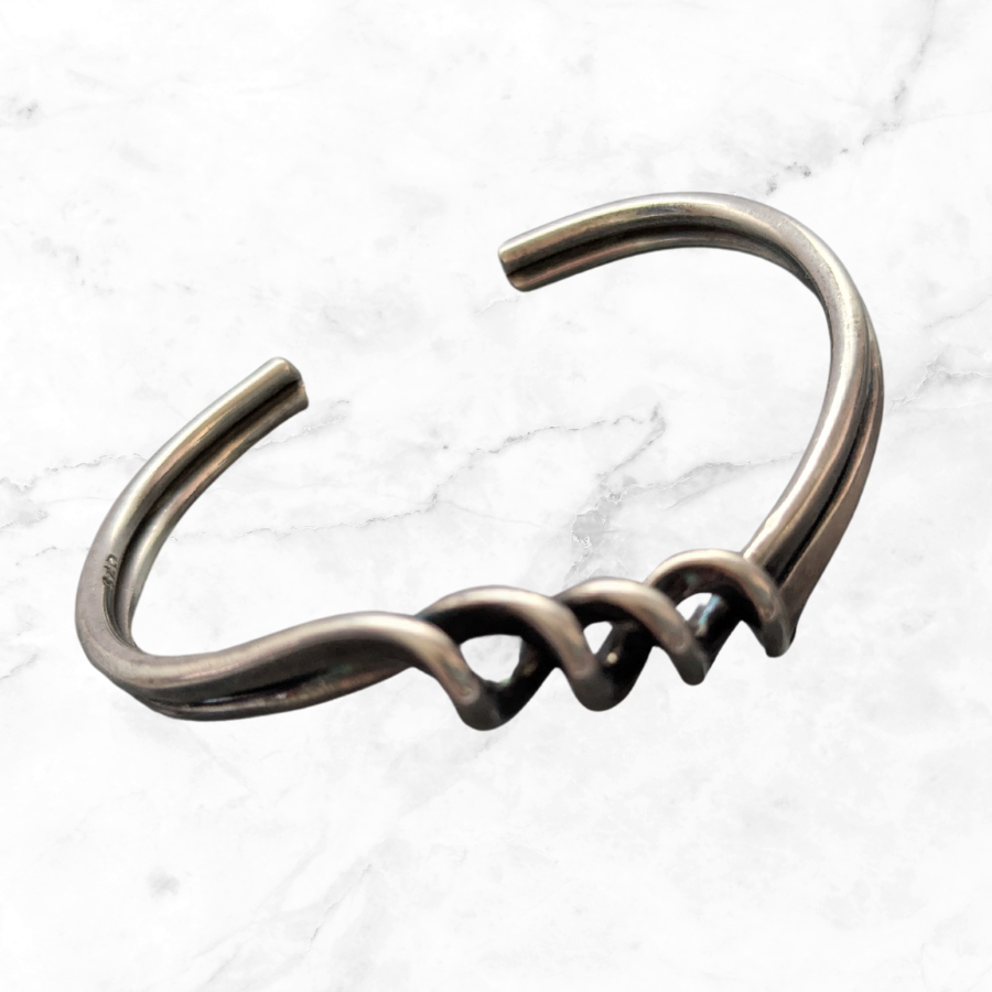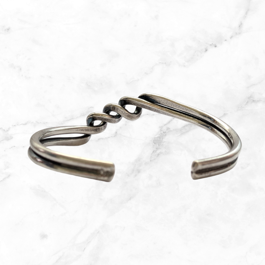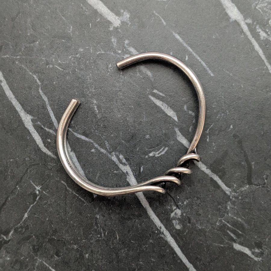 Vintage cuff bangle made from solid sterling silver. The bangle is stamped 925 on the inside.