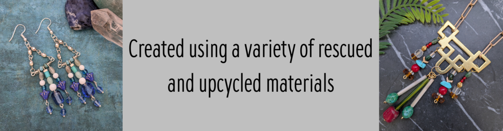 Reclaimed materials often have more charm about them and can add a quirky element to jewellery designs. Please note – I list as many materials as possible, when describing my handcrafted item. However, I don’t always know what some elements are made from.